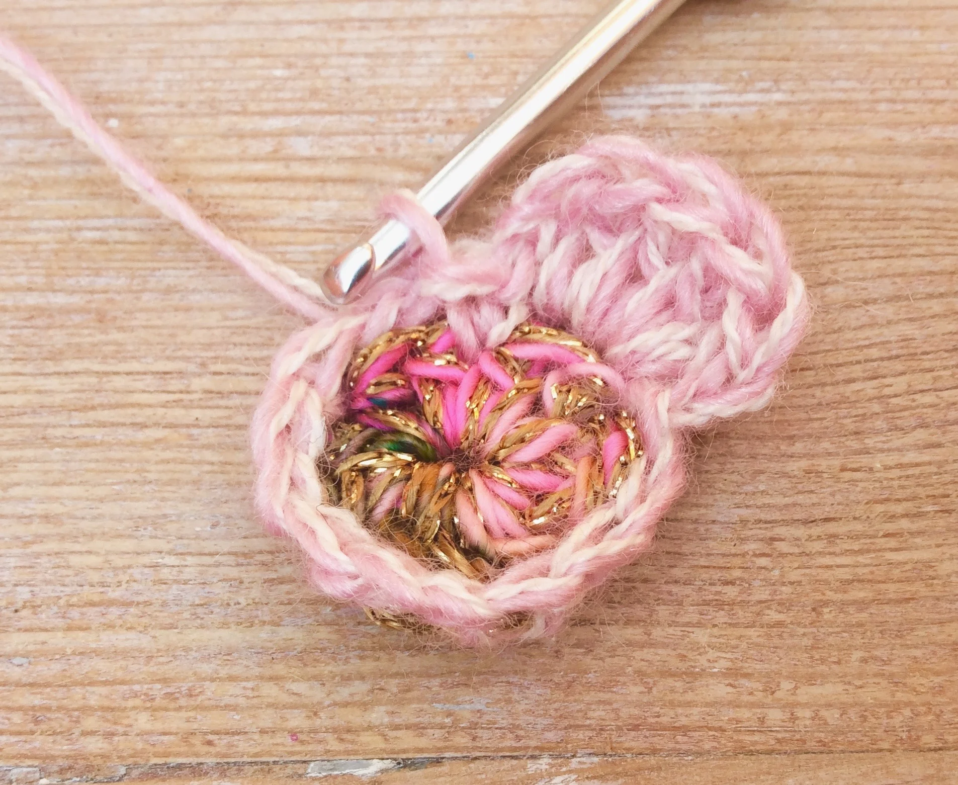 Oh I can't resist these little blossom petals! Mixing my lace weight yarns and adding a touch of gold or silver thread lifts my spirits no end. Just one ball of Louise Harding 'Amitola' mixed with a complimentary coloured lace weight yarn can produce hundreds of these pretty blossoms.